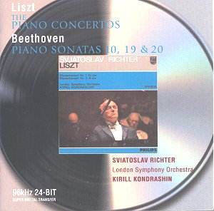 This famous Liszt coupling presents the demonic genius of Richter as he first flashed upon the Western world. The technical address is hair-raising at times, as he flings massive volcanic energy out of his instrument (with never a trace of hardness in the tone, note). But he can also be delicate and brings the most exquisite poetry to the more intimate passages, especially in the A major. Above all, he is fiercely committed to the music, the virtuosity is only a means to an end. Given a like-minded conductor these must be among the greatest performances the concertos have ever had. The recording is still fairly acceptable - just a touch strident in the orchestral tuttis and the solo string musings in the A major are too closely miked.