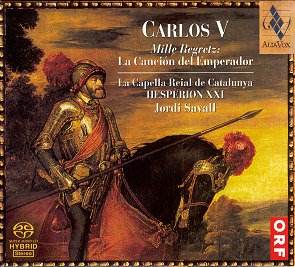 V Mille Regretz: La Canción del Emperador" Heinrich ISAAC (1450 - 1517) Fortuna Desperata: Nasci, pati, mori [4.19] Juan del ENZINA (1469-1529) Amor con fortuna (Villancico) [2.08] Todos los bienes del mundo (Villancico) [4.18] Josquin DES PRES (1440 - 1521) Vive le Roy [1.27] La Spagna a 5 [3.10] Mille Regretz (Chanson) [2.17] (with Luys de NARVÁYEZ (fl 1530 - 1550)) Mille Regretz (Canción del Emperador) [3.02] Clement JANEQUIN (1485 - 1558) Tielman SUSATO (c1500 - 1561) Pavana "la Battaglia" [2.07] Thoinot ARBEAU (1520 - 1595) Belle que tien ma vie [3.16] Antonio CABEZÓN (1510 - 1566) Diferencias sobre "Belle que tien ma vie" [3.30] Adrian WILLAERT (c1490 - 1562) Vecchia Letrose (Villanesca alla Napolitana) [2.33] Cristóbal de MORALES (c1500 - 1553) Sanctus della missa "Mille Regretz" a 6 [6.09] Agnus Dei della missa "Mille Regretz" a 6 [7.03] Jubilate Deo omnis terra a 6 [6.26] Circumdederunt me gemitus mortis Motete [3.09] Hieronimus PARABOSCO (16th century) Da Pacem Domine Ricercare XIV [5.01] Mateo FLECHA ‘El Viejo" (1481 - 1553) Totos los buenos soldados [1.47] ANONYMOUS Dit le Bourguygnon [1.16]; Quand je bois du vin clairet [4.51]; Harto de tanta porfía [7.18]; Fanfarria [1.08]. Recorded at la Colegiata del Castillo de Cardona, Cataluña, Spain, 23 May 2000 76 pages of notes in Français, English, Castellano, Catalá, Deutsch, Italiano and Nederlands, texts and translations of all songs and photos of the artists. HYBRID 2.0 STEREO SACD (playable on SACD players and also on CD players) |