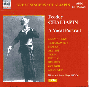 Feodor Chaliapin - A Vocal Portrait Acoustic Recordings Wolfgang Amadeus MOZART (1756 - 1791) - Madamina, il catalogo è questo (Don Giovanni,K527) recorded 1923 Vincenzo BELLINI (1801 - 1835) - Ite sul colle, O Druidi (Norma) recorded 1912 Gaetano DONIZETTI (1797- 1848) - Vieni: la mia vendetta (Lucrezia Borgia) recorded St. Petersburg 1912 Giacomo MEYERBEER (1791 - 1864) - Le rovine .. Suore che riposate (Robert le Diable) recorded St. Petersburg 1912 Giuseppe VERDI (1813 - 1901) - Che mai vegg'io! … Infelice (Ernani) recorded St. Petersburg 1912 Giuseppe VERDI (1813 - 1901) - Dormiro sol (Don Carlos) recorded Camden 1922 Giacomo PUCCINI (1858 - 1924) - Vecchia zimarra (La Bohème) recorded Camden 1924 Leo DELIBES (1836 - 1891) - Lakme, ton doux regard (Lakmé) recorded Paris 1908 Anton RUBINSTEIN (1829 - 1894) - Do not weep, child, do not weep in vain (The Demon) recorded St. Petersburg 1911 Anton RUBINSTEIN (1829 - 1894) - On the ocean of the air, without rudder or sail (The Demon) (14) recorded St. Petersburg 1911 Alexander BORODIN (1833 - 1887) - Have you enjoyed yourself, Prince? …I can't conceal (Galitsky's song, Prince Igor) recorded St. Petersburg 1911 Alexander BORODIN (1833 - 1887) - Are you well, Prince? (Khan Konchak's aria, Prince Igor) recorded Hayes 1924 Alexander BORODIN (1833 - 1887) - Neither sleep nor rest (Igor's aria Prince Igor) recorded Hayes 1924 Modest MUSSORGSKY (1839 - 1881) - Song of the Flea recorded St. Petersburg 1907 Gennady KORGANOV (1858 - 1890)- Elegy. recorded Moscow 1902 Piotr TCHAIKOVSKY (1840 - 1893) - The nightingale (12 Songs,Op. 60 - No. 4) recorded London 1913 Sergey RACHMANINOV (1873 - 1943) - When yesterday we met (15 Songs,Op. 26 - No. 13) recorded St. Petersburg 1914 Alexander GLAZUNOV (1865 - 1936)- Chanson Bachique (2 Songs,Op. 27) recorded St. Petersburg 1912 Johannes BRAHMS (1833 - 1897) - Sapphische Ode (5 Lieder,Op. 94, No. 4) recorded St. Petersburg 1916 Edvard GRIEG (1843 - 1907) - Abschied (6 Songs,Op. 4) recorded St. Petersburg 1914 Edvard GRIEG (1843 - 1907) - Stambogsrim (6 Songs,Op. 25, No. 3) recorded St. Petersburg 1914 TRADITIONAL - Maschenka (folk-song) recorded St. Petersburg 1911 Electrical Recordings Gioacchino ROSSINI (1792 - 1868) - La calunnia è un venticello (Il Barbiere di Siviglia) (1, 6) recorded Camden 1927 Vincenzo BELLINI (1801 - 1835) - Il mulino, il fonte … Vi ravviso (La Sonnambula) (1, 6) recorded Camden 1927 Charles GOUNOD (1819 - 1893) - Un rat, plus poltron … Le veau d'or (Faust) (2, 7, 16) recorded Paris 1930 Charles GOUNOD (1819 - 1893) - Vous qui faites l'endormie (Faust) (2, 7) recorded Paris 1930 Arrigo BOITO (1842 - 1918) - Ave Signor! (Mefistofele) (3, 8) recorded live Covent Garden 1926 Arrigo BOITO (1842 - 1918) - Son lo spirito (Mefistofele) (3, 8) recorded live Covent Garden 1926 Jules MASSENET (1842 1912) - Oh, mon maitre.. Oui! Je fu le chef (Don Quichotte.) (1, 6, 15) recorded New York 1927 Mikhail GLINKA (1804 - 1857) - O joy! … the hour of my triumph (Farlaf's rondo, Ruslan and Ludmilla) (4, 9) recorded London 1931 Nikolai RIMSKY-KORSAKOV (1844 - 1908)- Against the cruel crags (Merchant's Song, Sadko) (1, 10) recorded London 1927 Modest MUSSORGSKY (1839 - 1881) - In the town of Kazan (Varlaam's song, Boris Godunov) (1, 6) recorded Camden 1927 Modest MUSSORGSKY (1839 - 1881) - Boris's Farewell and Death Scene (Boris Godunov) (3, 8) recorded live Covent Garden 1928 Sergey RACHMANINOV (1873 - 1943) - All the gipsy camp is sleeping (Aleko) (1, 11) recorded London, 1929 Modest MUSSORGSKY (1839 - 1881) - Trepak (Songs and Dances of Death) (1, 11) recorded London 1929 Anton RUBINSTEIN (1829 - 1894)- Persian Love Song, Op. 34, No. 9 (1, 11) recorded London 1931 TRADITIONAL - Down the Petersky (5) recorded London 1929 TRADITIONAL - Black Eyes (5, 12) recorded Paris 1927 Modest MUSSORGSKY (1839 - 1881) - Song of the Flea (13) recorded Tokyo 1936 TRADITIONAL - Song of the Volga Boat Men (13) recorded Tokyo 1936 Maria Kovalenko (Soprano) (14) Olive Kline (Soprano) (15) Michel Cozette (Baritone) (16) George Godzinsky (Piano) (13) Anonymous Orchestra (1) Orchestra of the Paris Opera (2) London Philharmonic Orchestra (3) London Symphony Orchestra (4) Balalaika Orchestra (5) Rosario Bourdon (Conductor) (6) Henri Busser (Conductor) (7) Vincenzo Bellezza (Conductor) (8) Max Steinmann (Conductor) (9) Albert Coates (Conductor) (10) Lawrance Collingwood (Conductor) (11) A. A. Scriabin (Conductor) (12) Recorded 1902 - 1936 ADD |