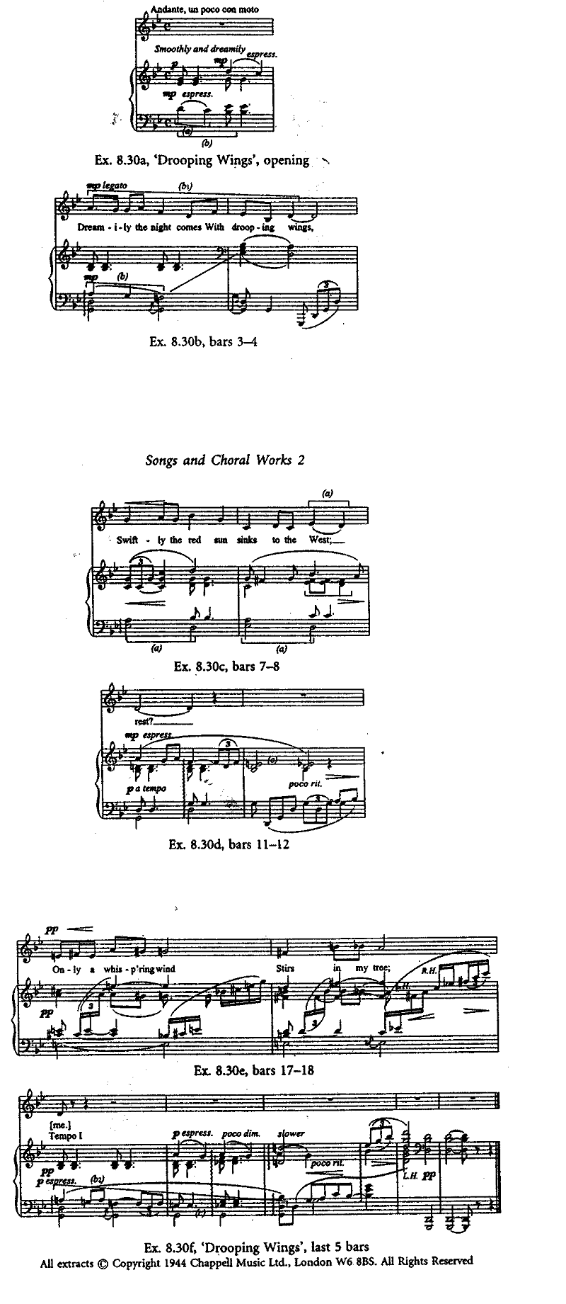 song, ‘Drooping Wings’ (Edith Sterling-Levis), less well known, such description