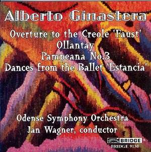 Ginastera’s early works were directly inspired by and influenced by Argentine folk music. This is evident in the early pieces recorded here. Estancia Op.8 is Ginastera’s second ballet score and the suite of dances drawn from it is fairly well known and popular. Many will remember Goossens’ recording release during the LP era. It thus does not call for many comments. This colourful and rhythmically energetic score is a sort of Argentine Rodeo (Ginastera studied with Copland) of which the concluding Malambo is particularly popular. The Obertura para el ‘Fausto’ Criollo Op.9 is inspired by a poem of the 19th century writer Estanislao del Campo which tells of a gaucho travelling to Buenos Aires and attending a performance of Gounod’s opera Faust. On his way back, he meets an old friend and tells him in his own words about his operatic experience while sharing a bottle of gin. Thus, the overture aptly and humorously mixes reminiscences of Gounod’s score with Argentine rhythms. A short delightful work and a good example of Ginastera in outdoor mood. It has also been recorded earlier and many will remember Howard Hanson’s recording released many years ago on Mercury - it was re-issued in CD format some years ago. More recently, it has been available in a collection of short Latin American works (Caramelos Latinos ["Latin American Lollipops"]) on Dorian DOR 90227.