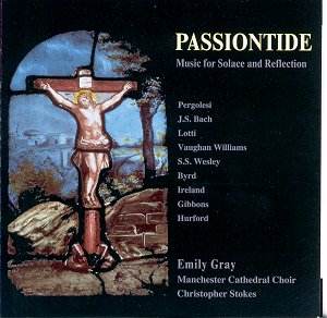 Felix MENDELSSOHN (1809-1847) Hear my prayer [11.05] Ralph VAUGHAN WILLIAMS (1872-1958) O taste and see [1.26] Peter HURFORD (1930-) Litany to the Holy Spirit (Herrick) [3.33] Samuel WESLEY (1810-1876) Wash me throughly [4.04] Giovanni Battista PERGOLESI (1710-1736) Stabat Mater [10.17] William BYRD (1543-1623) Civitas sancti tui [3.54] J.S.BACH (1685-1750): O sacred head sore wounded; Bist du bei mir [5.04] Pablo CASALS (1876-1973) O vos omnes [3.27] Antonio LOTTI (1667-1740) Crucifixus [2.55] Richard DERING (1580-1630) O bone Jesu [3.17] Orlando GIBBONS (1583-1625) Drop, drop, slow tears [1.21] John IRELAND (1879-1962) Ex ore innocentium [3.14] Maurice GREENE (1696-1755) Lord, let me know mine end [5.17] Edward MILLER (1735-1807) When I survey the wondrous cross [3.22] Manchester Cathedral Choir/Christopher Stokes (director/organ); Jeffrey Makinson (organ) Recorded at Manchester Cathedral January-Febuary 2002 |