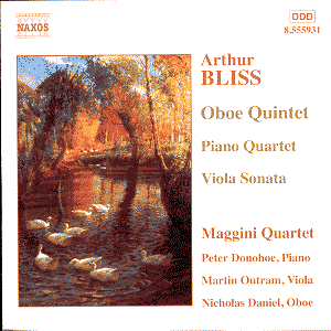 The Oboe Quintet is the best known and probably most recorded piece here. As well as being expertly written, not surprisingly for Eugene Goossens, it has the unique distinction of including a theme from an Irish dance tune (Connelly's Jig) and gaining the favour of Alban Berg when the latter heard it in Vienna, following its first performance at the 1927 Venice Festival. The first movement begins with a lyrical Assai sostenuto before developing into a more energetic agitato then dying away again. The second movement is more pastoral than anything in the sonata, yet still more ambivalent than the early chamber works. A lament-like section builds to a climax then pizzicato strings herald a faster, more rhythmic phase. The aforementioned jig appears in the driving final Vivace movement but is much more fleeting than the similar folk music theme in the equivalent movement of Bax's Quintet, written five years earlier. Nicholas Daniel and the Magginis play the work faster than my comparative version by the Audubon Quartet and Pamela Pecha with the result being a reading even more urgent and, for its time, modern sounding. This disc provides yet more evidence, if any were needed, that the Maggini Quartet is not only an incredibly talented group but also that its members are thoroughly attuned to British chamber music. A must buy for British music enthusiasts who must also be eagerly awaiting Peter Donohoe's take on the Bliss Piano Concerto.
