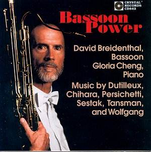 First, a very big ‘well done’ to Crystal Records. This is the ninth Crystal CD to be devoted to the bassoon and its amazingly vast repertoire. Many players have been enlisted and many types and groupings of bassoons, including the contra and bassoon quartets. Sadly I have not heard any of the others but if David Breidenthal is typical then I am certainly the poorer for that. He is the principal bassoonist of the Los Angeles Philharmonic a position he has held for over thirty years. His tone is mellow and sometimes in need of more attack. However the recording may be at least partially responsible for this. He is a virtuoso player who has the ability to make difficult music and challenging passages sound easy. Some of these works were written especially for him including Chihara’s ‘Fleeting Shadows’ a work inspired by the composer’s cats.