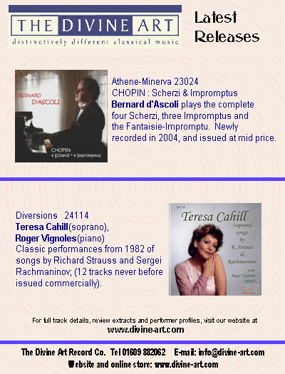 Every day up to 9000 MusicWeb review pages are read as verified by Google AdSense. Every one of those pages could be linked to your advertisement by a highlighted link or by a rotating banner. There will be at least 35,000 opportunities every week for our visitors to read your advertisement.