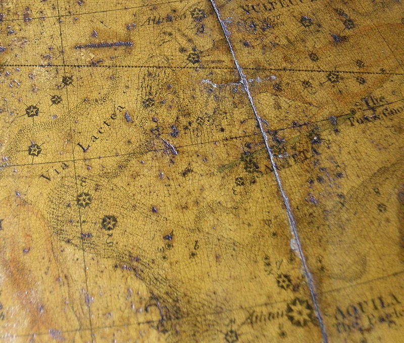 After restoration images Jana Eastwood.Each globe carries a cartouche. There are very difficult to read with the easiest being on the Celestial globe.