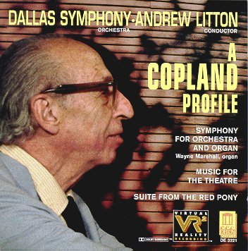 in 1924 after he had concluded his studies in Paris with Nadia Boulanger (who congratulated him on this score). It caused a sensation. After its first performance by Walter Damrosch, Damrosch said to the audience, "Ladies and gentlemen, I am sure you will agree that if a gifted young man can write a symphony like this at 23" - then he hesitated dramatically, leaving people to think that he would proclaim a new genius. However, he continued: "within five years he will commit murder." It was a joke of course designed to mollify the Sunday afternoon concert audience, ladies unaccostomed to Copland's "modern" sounds but the message sank in and later acid-tongued Claudia Cassidy commented: "It begins with a reverie, breaks into a squalling scherzo and ends, screaming like a bewildered banshee which by some twist of locale has found itself at the wailing wall." Again Litton gives a persuasive well-delineated performance of this complex often unsettling work which opens in idyllic mood with soft organ meditations beneath harp and strings. Rhythm and cross-rhythm inform the central scherzo which uses jazz-based material. It is interesting that a recurring phrase in this movement's quieter section, puts one in mind of a figure from Gershwin's song "The Man I Love", from Lady Be Good (again, 1924) this is distinctly odd particularly when one considers that Copland's attitude to Gershwin's music was to say the least ambivalent.