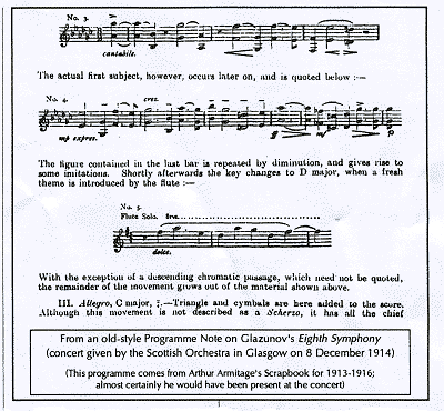 In modern times the lavishly-produced - and often outrageously expensive - programme has become something of a mark of a concert-giving body's prestige. Do they serve any purpose? Well, they can, but regrettably very often do not. It depends on whom they are really addressed to. At one time it seems to have been assumed that all listeners were musically literate; for instance, that coterie of cultured upper-class members of the close-knit German community in Manchester - most of whom probably were indeed very musically literate and who would consider it de rigueur to be seen at the Hallé Thursday evening concerts before the First World War (and even into the 1920s and 1930s) - were provided with a printed programme which ran to several pages and which included copious music-type examples of principal themes from the works to be performed. Such musical extracts were illuminated (if that is not really a misleading word in this context) by long, learned and more often than not quite meaningless and utterly confusing verbiage which academic musicians have always loved to indulge in (and still do), perhaps believing that in this way they raise themselves to the level of the real musicians: the performers. [Even as late as 1965 I was asked to supply music-type extracts from my own Second Symphony for publication - believe it or not - in the Bradford Telegraph & Argus for an article which appeared on the very day of its Bradford première; a whole half-page it turned out to be (juxtaposed next to an article on housing in some newly-developed council estate near Odsal Top)].
