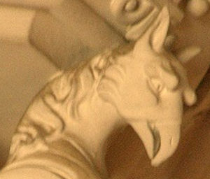 On the outer pendants of the library ceiling there are also griffins. These are playful little fellows because ....