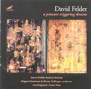 His works are published by Theodore Presser; his first CD containing various chamber music had been released on the Bridge Label in 1996, and was named "disc of the year" in chamber music by the American Record Guide. His second CD, released this June on the mode label, confronts the listener with two of Felder´s most complex and outstanding works for orchestra, "Six Poems from Neruda´s `Alturas".(1992-93) and "a pressure triggering dreams" (1996-97) as well as the chamber version of "Coleccion Nocturna"(1982-83) for clarinet, bass-clarinet, piano and 4-channel tape.
