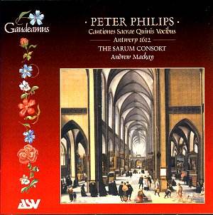 The 'Cantiomnes Sacrae Quinis Vocibus' published in Antwerp, was his first major publication. It is dedicated to the Virgin Mary. Andrew Mackay in his useful booklet notes writes that " This seriousness of intent is underlined by Philips' choice of texts, he shows a marked preference for setting words from liturgical sources such as antiphons and responds and hardly ever chooses freely from…. the Psalms as earlier renaissance composers so often did".
