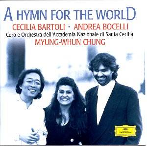 The only point about which I feel uncomfortable is, curiously, the front of the disc as shown above with the photographs and names of Bartoli and Bocelli in equal prominence with Chung. Bocelli sings on only one track and that for less than two and a half minutes. Bartoli sings on three tracks. Yes, the reverse of the disc makes the performance numbers quite clear but the name size with the photograph seems to me could mislead the impulse purchaser.