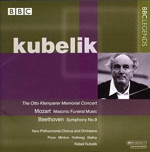 The sombre, dignified tones of the Masonic Funeral music take a few minutes to focus and coalesce into a unified ensemble, the double bassoon needing a few kick-starts to get the reed working, but the entry of the strings give the winds more courage. Indeed it is that occasional lack of unanimity, perhaps his beat was hard to read that night (though scarcely harder than Klemperer's had been at the end of his life!), which one could fault. Kubelik's textures are translucent in the Ninth. His interpretation looks back to the 18th century Beethoven as much as forward to the ground-breaking composer of the 19th. The performance has much warmth and humanity, qualities one readily associates with Kubelik, a lightness of touch in the scherzo, and a sense of searing profundity in the Adagio. Bailey's start at the recitative sounds just like Wotan chastising his errant daughter Brunnhilde (he had recorded the god's Farewell with Klemperer). The laser-bright tones of Price are a joy as ever (that we lost her to Germany for so much of the rest of her career remains a scandal). With the fresh-toned Hollweg and the golden lustre of Minton (a glorious Cherubino under Klemperer) the singers form a first-rate quartet. The remaining laurels go to Wilhelm Pitz's Philharmonia Chorus (fine diction throughout) and the orchestra, though the biggest must still be reserved for Kubelik, a conductor who undeservedly received too many brickbats and not enough plaudits.
