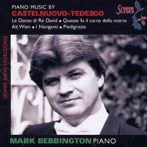 It was through the encouragement of his teacher Aldo Ciccolini that Mark Bebbington began to perform the piano music of Castelnuovo-Tedesco. This composer was born in Italy. However in the 1930s his Jewish ancestry forced him to leave for the USA. There he made a career in Hollywood. His pupils include André Previn and Nelson Riddle. You might well have heard his name. He wrote a guitar concerto for Segovia and this was recorded. Also his reputedly Hollywood-brash Second Violin Concerto, subtitled The Prophets, was taken up and recorded by Jascha Heifetz (RCA).