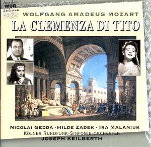 Recordings and even performances of La clemenza di Tito were few and far between fifty years ago and so it is interesting to have this recording, made under studio conditions in what is today WDR in Cologne. The biggest name is of course Nicolai Gedda, here caught quite early in his career but already a much-recorded singer after only three years on the international circuit. He was a fine Mozartean and recorded several of the operas on commercial discs - but as far as I know not this one , even though one aria was included in a Mozart recital from a few years later. It is also mainly for his participation that this set is of interest to a wider public. This doesn’t imply that there couldn’t be other reasons to acquire it. One such is the conductor. Reading reviews from his lifetime, and even later, Joseph Keilberth was rarely regarded as a "great" conductor, rather a reliable but middling Kapellmeister. In later years opinions have changed, however, not least through his Wagner recordings from Bayreuth. His Decca albums of Lohengrin and Der fliegende Holländer count among the best. Recently, Testament have issued the first ever stereo Ring cycle which has received glowing reviews and even been hailed as the most recommendable version ever issued. His Mozartean credentials are a lesser known quantity, but there is a companion Zauberflöte on Capriccio from the same source with actually more prominent soloists: Josef Greindl, Rudolf Schock, Wilma Lipp, Teresa Stich-Randall, Erich Kunz and others – mouth-watering, isn’t it? If his conducting has the same characteristics there as on this Clemenza di Tito, it must be a lively affair. There is forward movement from the beginning, and comparing tempos to Charles Mackerras on his recent DG set, Keilberth is often a notch faster and notably so in Sesto’s second act rondo Deh, per questo istante solo, where he beats Mackerras by almost two minutes – and still it doesn’t sound rushed. Elsewhere the situation can be reversed but on the whole his tempo choices make sense. He lacks the elasticity and lightness that Mackerras’s chamber orchestra produces and which is in line with the "modern" or "authentic" approach. Where he can’t compete is in sound quality. The 1955 sound is clean and detailed and has wide dynamics but the actual sound is a bit glassy and lacks warmth.