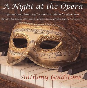 In splendidly assertive sound there is no mistaking the grand manner. It's a mantle that Goldstone assumes with an aristocratic flourish. Those two words apply resoundingly to the superbly paced Rigoletto paraphrase. Sgambati and Goldstone seem to conspire in the gentle fragility of the Mélodie from Gluck Blessed Spirits. The bejewelled Chopin-Mozart variations may well be familiar from the version with orchestra but here it shines in poised finery. Rachmaninov and Rimsky provide an excuse for Goldstone to set the Bumble Bee skimming irately along at breakneck speed. Grainger's Strauss Ramble is a delightfully complex skein of sentimentality, grandiloquence and those so-familiar silver-dripping notes. Back to Liszt for yet more panache in the Grand Fantasie - Norma Reminiscences. Busoni is a much more serious proposition in the Carmen Chamber Fantasy in which the work's pianola-like mechanistics combine irresistibly with the vaguest hint of a smile. Along the way Goldstone delivers some superbly judged shadowy-misty textures - a miracle pulled off with consummate and evidently natural skill. Liszt's Liebestod transcription seems thicker and less successful to me until the grand-statement of the love theme at 4.10. More successful is Mendelssohn's Fantasy on The Last Rose of Summer. This is suitably sentimental with its Celtic skirl and light melancholy. A fond farewell is bid with Alfred Grünfeld's Soirée de Vienne in which play is made with waltz motifs from Fledermaus and other concert dances by the Royal family of the waltz.