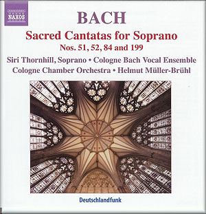 Jauchzet Gott in allen Landen! is the best known of these cantatas, largely I suspect because of the interplay of voice and trumpet obbligato. The skills of the balance engineers are again much in evidence here, especially in the way that the trumpet’s lines are always clearly distinguished, yet always subordinate to the singer. A little more bounce from the strings in the opening aria might have been nice, but Thornhill projects enough energy through her phrasing to keep the momentum. Some very attractive singing in the other two arias as well, that just about compensates from the disappointing lack of crispness from the strings.