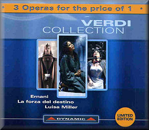 This collection of three live performances of Verdi operas has