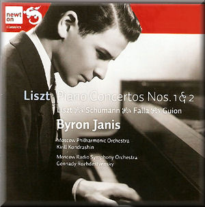 These performances of the Liszt Concertos are also available on a super-budget box set (Byron Janis: The Legendary Concerto Recordings, Brilliant Classics 9182, 4 CDs for around £11). That whole box can be purchased for little more than this Newton CD. MWI Classical Editor Rob Barnett made it his Bargain of the Month as recently as October, 2010, and I’ll start by quoting what he wrote then: