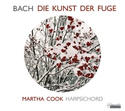 As far as I’m concerned, whatever it takes for an artist to justify a recording or to be motivated to make it in the first place, I’m fine with that. Ultimately the test of any recipe is in the eating – and Martha Cooke’s recording certainly goes down the hatch easily but not memorably. How much of that is because of the order of the Fugues (I-III-Canon alla Decima-II-IV-Canon alla Ottava-V-IX-X--VI-VII-Canon alla Duodecima-VIII-XI-Canon per Augmentationem-XIV), or her choice which ones to include (not included are XII [Contrapunctus inversus a 4]-XIII [Contrapunctus inversus a 3]-XVIII [Alio modo Fuga a 2. Clav.], for the very simple reason that they can’t be played by one player alone), or her steady, solid playing, or the neat, straight laced instrument, is hard for me to tell. Certainly everything is in place and deliberate, with a nice resonant sound the quality of which I started especially appreciating after comparing it to Fabio Bonizzoni’s rather dry recording on Glossa. Incidentally, Bonizzoni takes 63 ˝ minutes for his selection of works [BWV 1080.1-12, 14-15, 18-19] to Marth Cook’s 83:26. Beyond that, there’s not much by way of stagger or bending the notes or ornamentation. It’s just a thoughtful and unhurried, beautiful performance from one fugue to the next. That je ne sais quoi that I’m trying to pin down as missing… it might be that from the performances I adore, I get a sense of greatness, of finality, of something bigger than myself (actually, almost any Bach performance does this, Martha Cook’s included)… well, that je ne sais quoi in any case, that makes Bach the greatest composer and many an atheist’s Ersatz-deity. And that I am missing here. One of the places I am getting it (certainly with more ornamentation going on, almost to a fault… but also with a wonderful flexibility and buoyant, forward-momentum-creating touch) is Ton Koopman’s recording (Challenge Classics). Martha Cook doesn’t propel me. She doesn’t give me a sense of that Bachian perpetuum mobile.