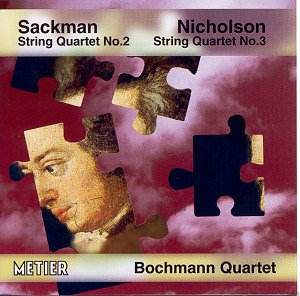 Nicholas Sackman's Second String Quartet was written in 1990-1991 and first performed in 1991 at a Mozart: Preconstruction and Deconstruction concert at the Blackheath Concert Halls in London. The commission specified a "real and substantive connection with Mozart's music". Thus Sackman's piece alludes to some pieces by Mozart and particularly so in the final fugal movement based on Mozart's Afadio and Fugue K546. However Sackman manages to remain his own self throughout this substantial quartet and succeeds in thjis from first to last in spite of the Mozartiana. The first movement has a clear introductory character and is tenuously linked with a fragment of the Don Giovanni Overture whereas the second slow movement is discreetly based on an aria from the fourth act of Figaro. The Mozart material is much more evident in the busy fugal last movement which nevertheless ends somewhat unresolved. Again Sackman has been very successful in devising a fully integrated piece of music in which "Mozart's own music is simply swept into the maelstrom of personal creativity" while clearly avoiding any post-modernist collage. A quite substantial and highly rewarding piece and this superbly played and warmly recorded performance is a worthwhile addition to Sackman's shamefully scant discography.