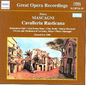 This recording was initially one of the many casualties of the Second World War. It happened that the Italian Victor company in Milan recorded this Fiftieth Anniversary celebration of the first performance of Cavalleria Rusticana in April 1940 when Mussolini and Hitler were poised to move dramatically against what was left of Europe not under their domination. It was not until 1947 that the English HMV and American Victor companies released it. Featuring the 50-year-old Beniamino Gigli, commonly accepted to be the successor to Caruso, and with the composer conducting, it was certainly intended to be a gala event.
