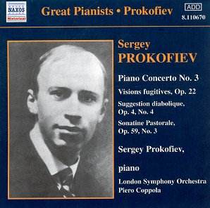 The Third Concerto is the most popular of the five piano concertos and in spite of its ostentatiously virtuosic solo part, the piano is woven into the musical texture in a way that make it one of Prokofiev's more satisfying and integrated works. Since 1932 some great players have been tempted to record it and there have been some distinguished results. The first one of real note was not until 1949 when William Kapell recorded it under Antal Dorati. Significantly, what was admired about the piano playing in this performance was described in similar terms to those of Prokofiev's own playing. In a work demanding panache and virtuosity, a performance to make your "hair stand on end", then we are clearly in Martha Argerich territory and her 1967 recording is of benchmark status. But in a work where the orchestra is very much a partner, the electric combination of Ashkenazy and Previn in their 1975 recording with the LPO make it many people's favourite. By the time we get to 1993, recording quality is making the most of the virtues of the Berlin Philharmonic under Abbado (the same team that accompanied Argerich 26 years earlier) in an outstanding performance with Evgeny Kissin, although some thought it could do with a little more soul. This is provided in Michel Béroff's 1974 Leipzig disc with Masur. Horacio Gutiérrez, something of a war-horse concerto specialist, offered a good example of a performance from the modern school of virtuoso ivory hammering in 1990. There is fine playing from the accompanying Concertgebouw under Järvi and Gutiérrez can certainly excite but he finds it difficult to play really quietly when required and so many subtleties are lost.