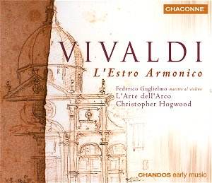 The twelve l'estro armonico concertos, op. 3, are perhaps the high point of this set. Scored for a small string orchestra (basically an augmented string quartet - four violins, two violas, cello and double bass - there are works featuring a solo violin, two violins and four violins) and continuo, they are in the concerti grossi style, combining elements of the Roman and Venetian styles prevalent in the early eighteenth century. These concertos contain a wealth of musical variety, both in terms of melody and in the way the different instruments combine. Their popularity was immediate and widespread - the seminal influence of these works was such that they laid the groundwork for the 18th century concerto. Composers all across Europe came to know them. Even Bach, who made few such transcriptions of other composers' works, transcribed five of them for solo harpsichord, and one for four harpsichords and orchestra. The works themselves are generally lively and expressive, with a variety of melodic styles, ranging from the typically Vivaldian (the allegro of the Concerto no. 2 in G minor), with repeated notes that recall the Four Seasons, to the almost French-sounding allegro of Concerto no. 9 in D major. Vivaldi set out the ground rules for the concerto in the set of works; it can be seen as a kind of guidebook to the concerto form for future composers. Christopher Hogwood's recording of these works breaks no new ground. These performances are spirited and energetic, with the clean, crisp sound and texture of authentic instruments. Comparing this set with Trevor Pinnock's recordings on Archiv shows little difference, aside from the pitch. Curiously, Hogwood records these concertos at A=440, as opposed to a more "baroque" pitch. Federico Gugliemo, the lead violinist, is an excellent performer. You can hear how well he has mastered the Vivaldian idiom, especially in the lively final movement of the 8th concerto. His interplay between staccato strokes and legato passages gives a full range of colour to these works. At times his violin sounds a bit harsh, and this will deter those listeners who don't care for the 'green' sound of baroque violins (his is a copy of a Guadagnini). But listening to his moving performance of the solo section of the 9th concerto makes it all worthwhile. This recording suffers from a slight lack of depth. At a time when too many recordings have artificial reverberation added the light reverb on this set seems to dull by comparison. Yet at higher volumes, the sound comes alive and fills out the aural picture. While this set is well performed, with a group of excellent musicians, it lacks the energy that would set it apart from so many other Vivaldi recordings. Perhaps after hearing Fabio Biondi's hyper-energetic interpretations of Vivaldi, I find others bland? If you don't like Biondi's recordings, though, you may appreciate this set more. Kirk McElhearn |