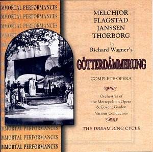 This recording left me with a wonderful feeling: the art of Flagstad is not gone from us. Here before us is her Götterdämmerung in a form every opera lover can enjoy as well as appreciate and it will now last forever. Melchior (after scene 1), Thorborg, Eduard Habich as Alberich, and Dezso Ernster and Ludwig Weber as Hagen are also memorable.