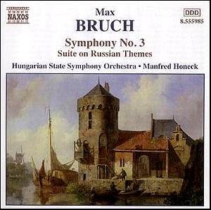 With a performance of the third symphony to conduct within days of hearing this disc, it has been much in the forefront of my mind, and despite reviews already posted on the website by two colleagues, I feel moved to add an opinion, particularly about the symphony. I must also declare myself as Bruch’s biographer and probably among both his fiercest champions and his harshest critics. He tackled all recognised forms, excelling in the concerted works for violin, with the first head and shoulders above anything else he penned. His choral music needs more attention than it gets on the performing circuit (there’s a reasonable amount on record, though rather paradoxically of the larger, therefore more expensive, works to mount when it comes to planning a season), and I applaud Gerard Schwarz’s enthusiasm with his Royal Liverpool Philharmonic Orchestra. Bruch is also a top-class melodist with the folkmusic from colder lands (Scotland to Iceland via Sweden and Russia) a favoured source. On this disc the Suite is given a robust performance despite the arid acoustics of the recording studio, which has hopefully given way since 1987 (the year of this take) to something more resonant. Honeck lingers sympathetically where Bruch shines the focus on his favourite instruments, the combination of harp and cor anglais at the start a typical example. The adagio sostenuto has its vital funereal quality despite some internal rough blending and suspect-to-dire intonation within the brass and winds. Its sweet-toned violin solo is stylishly shaped followed by a paced outburst to the climax, where the strings bask in the joys of another of his melodies. The energetic ‘Song of the Volga Boatmen’ suffers most from the dry Hungaroton’s studio, the cymbal clashes in danger of making it all sound like a parody and too daft for words. | Error processing SSI file |