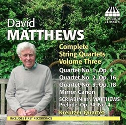 English composer David Matthews has a substantial body of work. There are almost as many quartets as Beethoven wrote and several more symphonies plus the usual body of choral and instrumental pieces, some very large scale. So I am slightly ashamed to admit this is the first disc of his music I have heard despite well over half a century of concert-going and record collecting. The quality on display here in these early pieces is very striking and I for one will be investigating more of his output. Those who have bought the first two volumes (