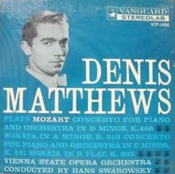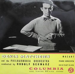 Some of these educational programmes were assuredly valuable and interesting. On 23 April 1956, for example, he took part in "A Mozart Problem", a programme devised and introduced by A. Hyatt King.  Its content was summarised thus: "the piano writing in the slow movements of Mozart’s concertos is often a mere outline of what he himself played. In 1802 Philipp Hoffmann published elaborated versions of the piano parts of six slow movements based on his memories of Mozart’s style of performance. Those for the concertos in C (K467), in A (K488) and in C minor (K491) are being played tonight by Denis Matthews. Listeners will find scores useful. With St. Cecilia Orchestra/Trevor Harvey”. I only wish I could go back in time and ask him why this is fine and my decorations in Haydn were inappropriate.