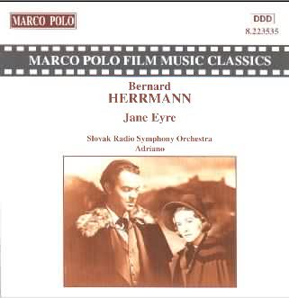 From the very first moment of the first track it proclaims itself a Gothick romantic score for a gothic romantic story. The jumpy sleigh ride [2] is carefree but icily treacherous. This is a Herrmann trademark which can also be heard in the sledge music of Kane and the glorious marine fan-faring of the music for Beyond the Twelve Mile Reef. Much of the present score has a Sibelian edge. Try tracks 3, 9 and 13. Thornfield Hall [7] opens with an horrific machine room percussive episode. The Valse Bluette played on a (not at all offensive) synthesiser is a tinkling music-box waltz. Herrmann calls on all the glorious variety of his orchestral palette. Track 8 for example offers Eastern-edged and commanding sea music. Track 10 at 00.57 features a remarkably lovely extended oboe melody heard over undulatingly gently chugging strings. Track 12 has a village dance later cut through with roughhewn fanfares: a very original effect woven over an innocent Herrmann tune. Track 13 has a haunted beauty resolving into a nightmare of braying rather like something from the gloomiest pages of a Pettersson symphony. (I ask again did Herrmann know Pettersson's music or vice versa?). In track 16 there is yet more high work for the violins and a solo violin chastely serenades rather like Holst with a touch of pastoral Butterworth. The Wedding [18] has a satisfying theme with turns of melody over chugging deep strings; Tippett-like yearning under its fingernails. This is very British in feel. Like all the best Gothicry: in the midst of beauty suddenly the dust and mildew appear. In Jane's Farewell a plaintive oboe calls and laments. This is all unashamedly melodramatic with yet more high whistling strings and strangled distant fanfares. This music has a slightly crazed dream-storming character: Black clouds rush across a moonlit sky. In the finale we return to the big lamenting and exulting theme coursing over the shuddering deep strings.