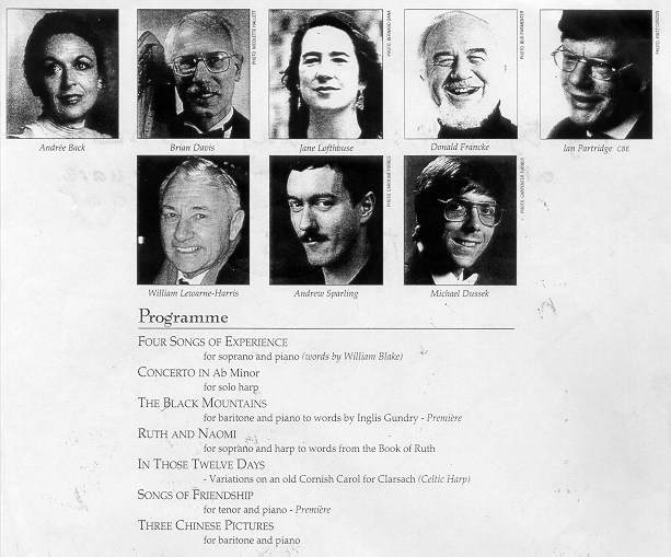 Many artist friends contributed to the success of this Concert, and many friends and relatives came to hear the music as well as many whom I did not know. The Deputy Grand Bard, Ann Trevenan Jenkin, came from Cornwall. Mrs. Vaughan Williams represented her husband, with whom I had studied so happily. Mrs. Antony Benskin came up from Devon, her husband being unable to join her for health reasons. From Cornwall also came Mr. Donald Rawe, a particular representative of Cornish culture. From Ireland a whole contingent including, of course, my younger daughter, Penny with her husband Philip and his parents Eric and Eve Beck, together with their friends, the architect and musician, Mr. and Mrs. Brendan Chawke. Our older daughter Suzie was also there with her husband, Peter, his father, Desmond, Aunt Jennifer and brother Christopher.