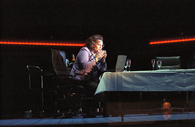 out of view. Macbeth (Zeljko Lucic) wanders on stage, complete