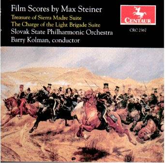 The Charge of the Light Brigade fares better. The excitement of the score is very well captured. The playing is more impressive with splendid brass choruses, soaring strings and solid tympani ostinati - this is the real Steiner sound. How vividly Steiner writes for historic action movies putting many modern composers to shame and, of course he does not have to rely on a synthesiser. His music captures all the smoke and pillage and the devastation of the aftermath of "The Massacre" very graphically. As for "The Charge" itself, Steiner handles it in masterly fashion beginning with a display of British military confidence and swagger caught in the preliminary slow march to the battleground then the tempi gradually increases as the cavalry breaks into a trot before the full charge into the valley of death. This battle scene is exceptionally thrilling with vivid evocations of thundering canon, galloping hooves and flashing sabres. Little quotations from 1812 remind us of the Russian foe; and the Russians Indian allies sinister Sarat Khan motif (the Brigade had encountered Khan in India previously), round out the Crimean battle music. The players of the Slovak State orchestra, especially the brass section must be congratulated on their skill and stamina and they do outplay their Brandenburg rivals on Marco Polo in this sequence. Many may feel that this new 35 minute suite contains too much blood and thunder. Of its total playing time of 35 minutes, 11:50 are devoted to "Massacre" and 15:42 to "The Charge" itself - which is rather a lot. I suppose it is meant to complement and round out the 1995 Marco Polo recording with the Brandenburg Philharmonic Orchestra conducted by Richard Kaufman, in a more varied 29 minute suite of music which included more romantic interest and the Waltz. It is worth remembering the Gerhardt recording of the March only (complete with its very attractive middle section which is only hinted at on this CD) on the Now Voyager - Classic Film Scores of Max Steiner CD in the RCA series (GD80136), this 2½ minute piece is one of the highlights on that disc.