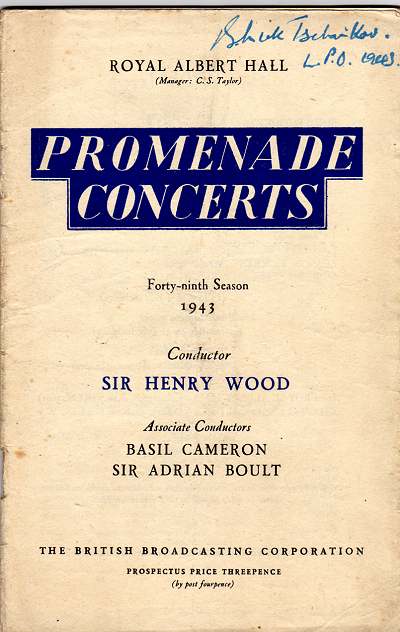 Prospectus for the 1943 Prom season. Note the price: three old pence Return to book page